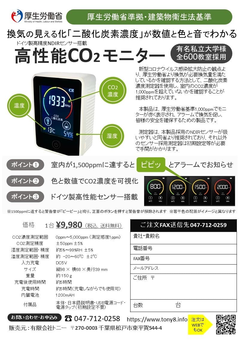 事務所や家庭などの室内における「CO2濃度」がひと目でわかる